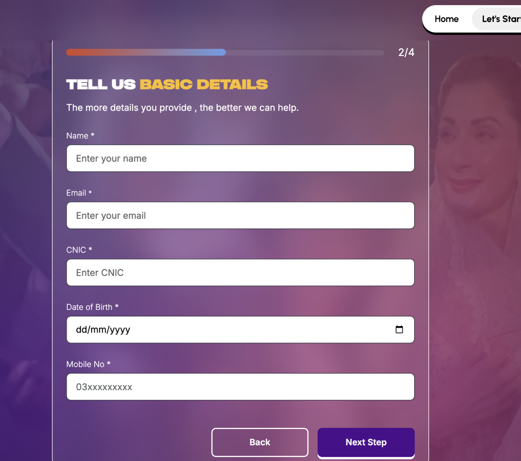 Register using your CNIC, mobile number, and basic personal details.